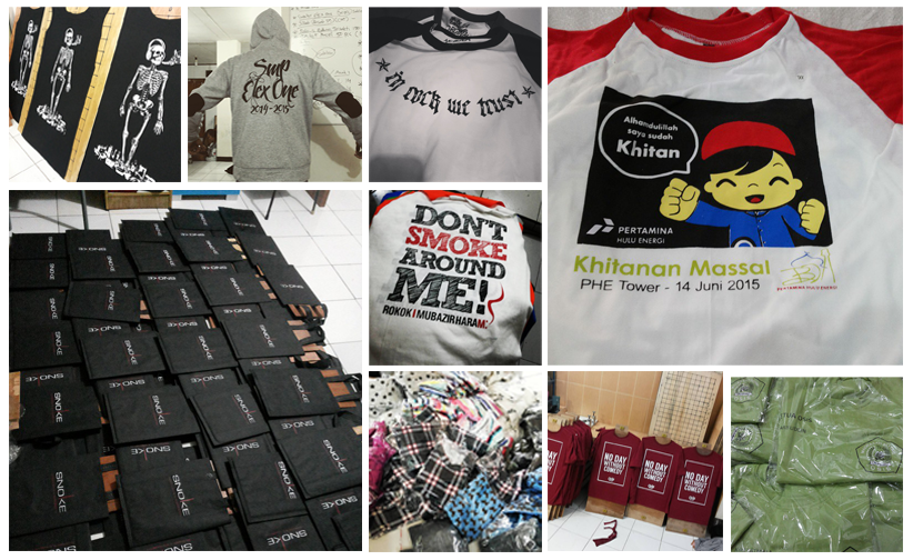 Setiap produk yang kami hasilkan seperti Kaos, Polo Shirt, Kemeja, Jaket, Sweater, Hoodie,